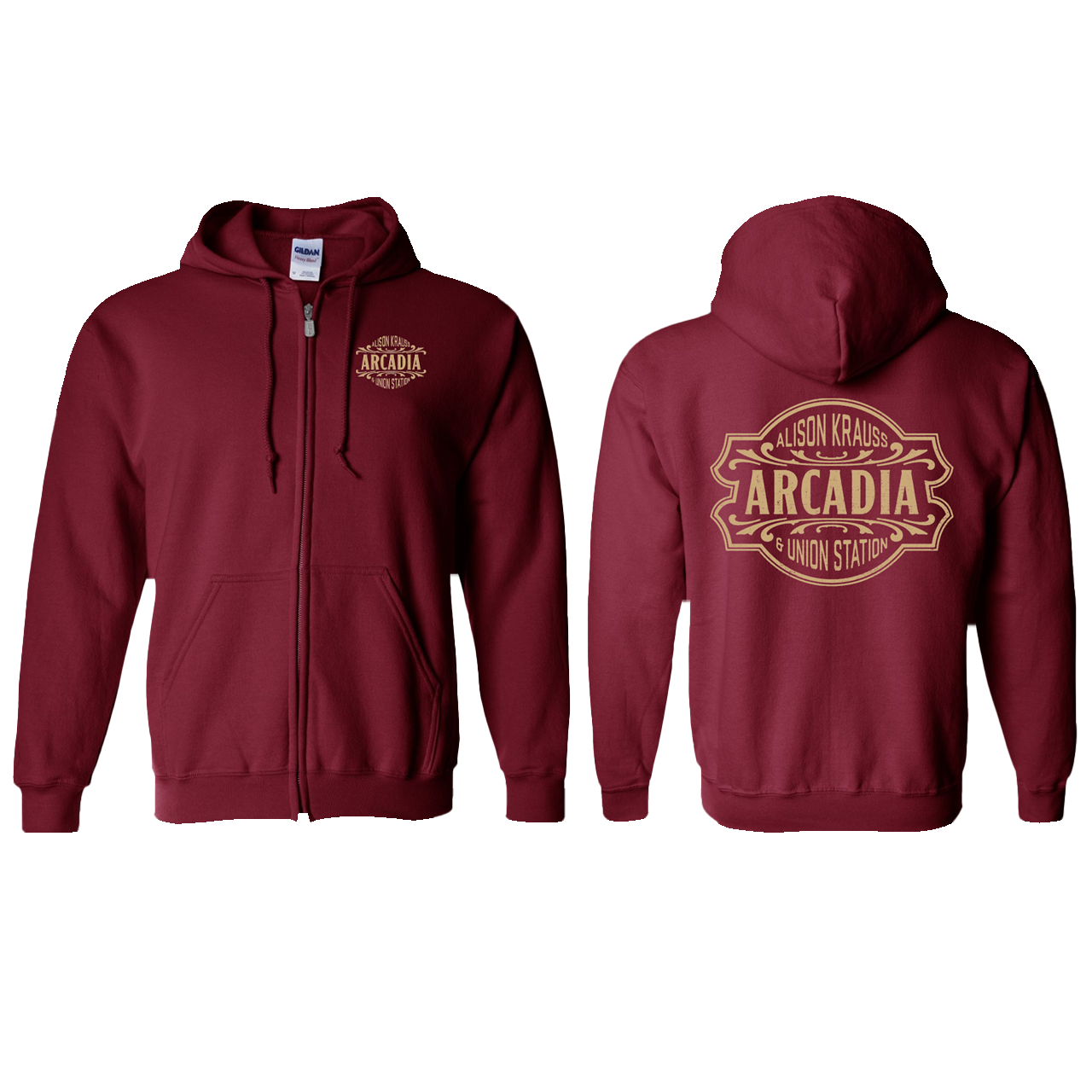 This Cardinal Red zip-up hoodie has a classic fit and features a gold Arcadia logo on the front left chest and the back. The unlined hood has a Cardinal Red matching drawcord.